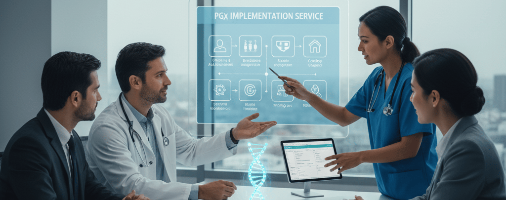 Our PGx Implementation Service supports healthcare organizations, clinics, pharmacies, and wellness programs in integrating genetic insights into their medication management systems with clarity, confidence, and care.